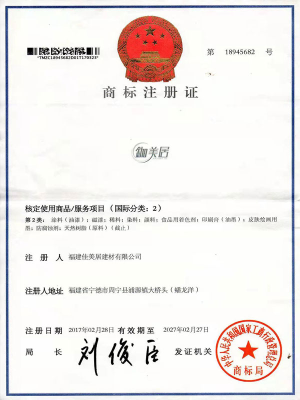“鉫美居”商標(biāo)證書(shū)